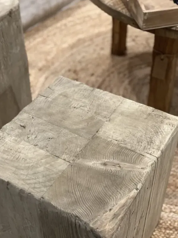 Snowdrops Copenhagenin ihastuttava natural sävyinen tukeva puujakkara, joka toimii istuimena, mutta myös yöpöytänä tai sivupöytänä. Nämä ”kuutiot” ovat todella painavia vanhasta puusta valmistettuja yksilöitä, joten kestävät isomman miehenkin alla. <3