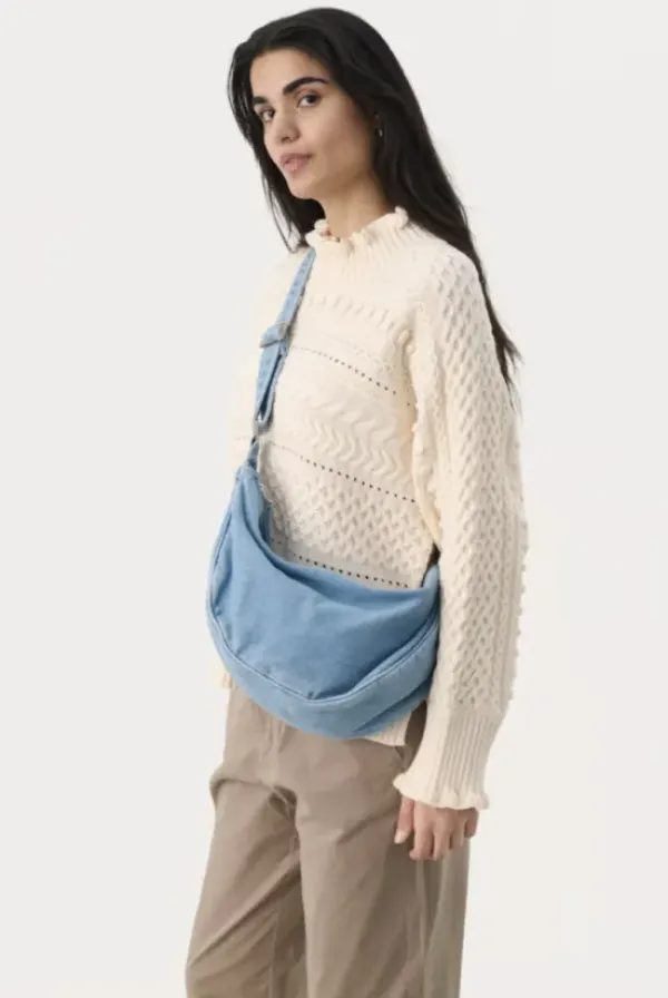 Part Twon ihastuttava shoulder bag tuomaan ilmettä farkkutytölle. Tämä farkkukankainen yliolanlaukku on ihana lisä asuun kuin asuun. Säädettävä hihna ja vetoketjukiinnitys.