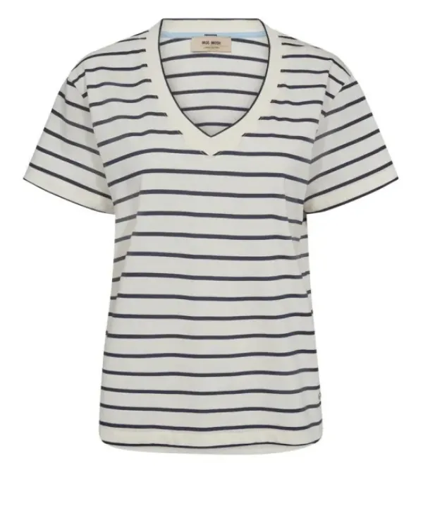 Mos Moshin raikas raidallinen t-paita kevääseen! Tässä t-paidassa on kiva v-kaula-aukko ja rento, suora leikkaus. Yhdistä farkkujen, pellavahousujen tai vaikkapa lempparishortsien kanssa!