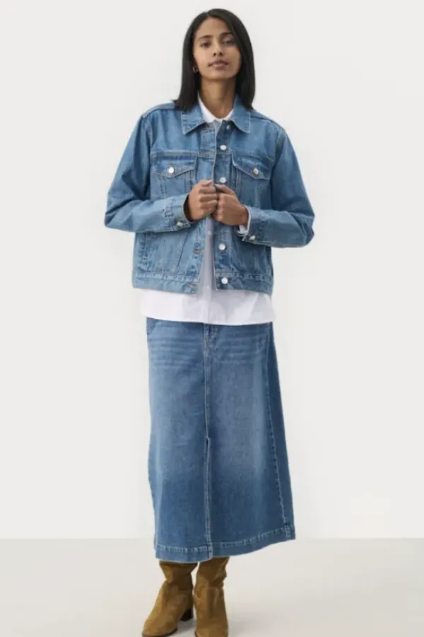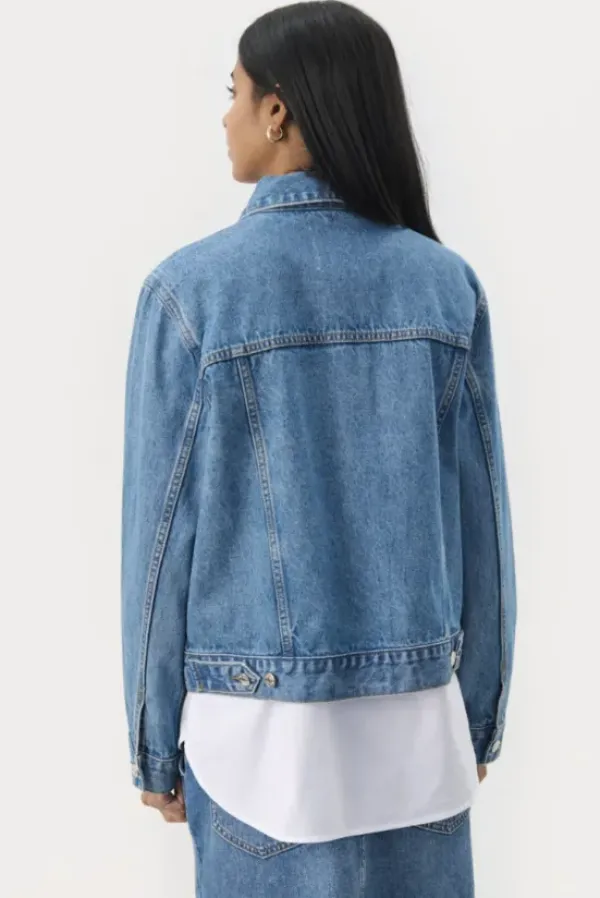 Part Twon klassinen farkkutakki kivassa keskisinisen sävyssä. Ajaton farkkutakki on kiva kaivaa esiin joka kevät. Pidä ensin jakkumaisesti takin alla ja kesällä sitten ihan takkina.