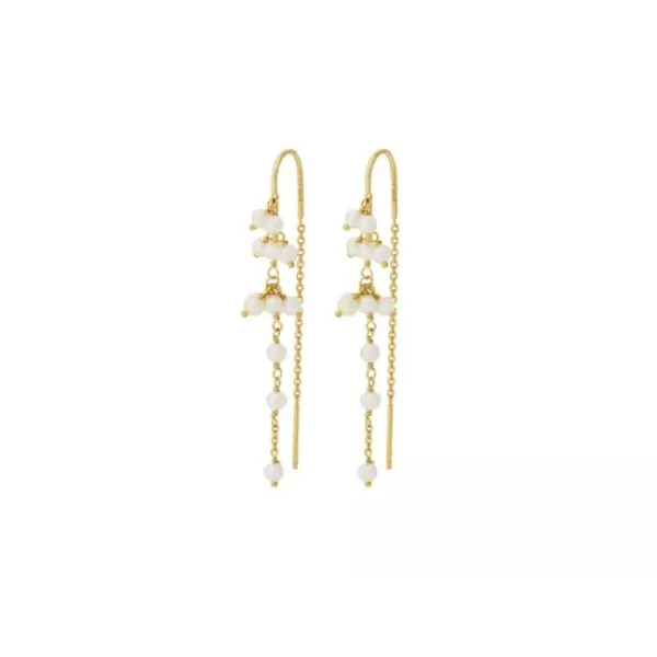 Pernille Corydonin kauniit ketjukorvakorut, joissa koristeena helmiä.
