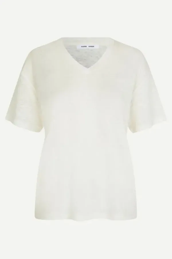 Samsoen kiva pellavainen t-paita v-kaula-aukolla. Sävynä lämmin valkoinen.