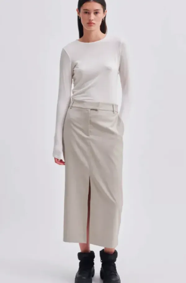 Second Femalen uutta! Ihastuttava pitkä Sharo hame sopii toimistolle loafereiden ja paitiksen kanssa tai kaupungille saappaiden ja pehmeän neuleen kanssa. Kesällä kaveriksi teeppari ja tennarit! Ihana, ajaton hame, joka on helppo yhdistää monella tavalla.