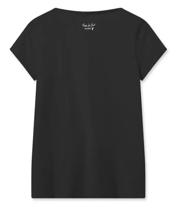 Mos Moshin uusi perus t-paita v-kaula-aukolla, Luomupuuvillasta valmistettu hengittävä ja pehmeä teeppari sopii hameiden ja farkkujen kanssa ja se on ihana perusneuleen alla. Ilmettä tuomassa päärmäämätön kaula-aukko pienellä rosolla. Helmassa pieni Mos Mosh -logonappi ja niskassa pieni logoprintti.