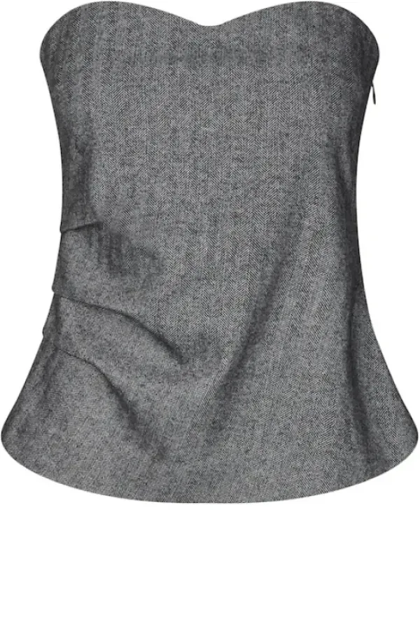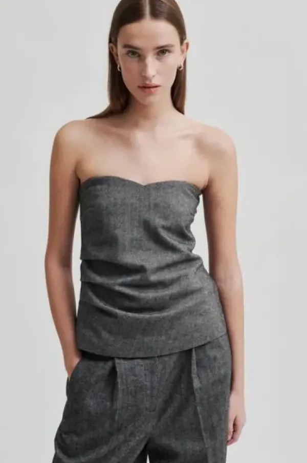 Second Femalen tyylikäs toppi kalanruotokuviolla. Takana kuminauhat ja sivulla vetoketju. Villasekoitetta. Vuoritettu.