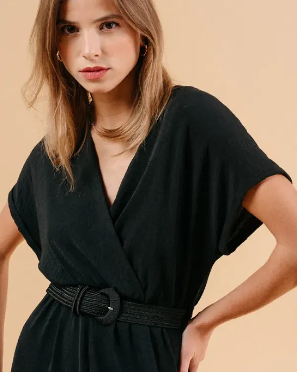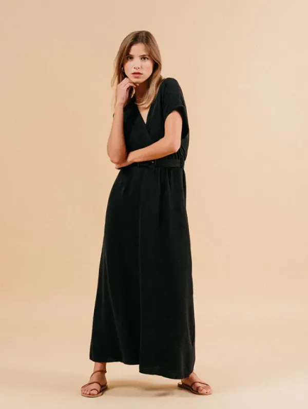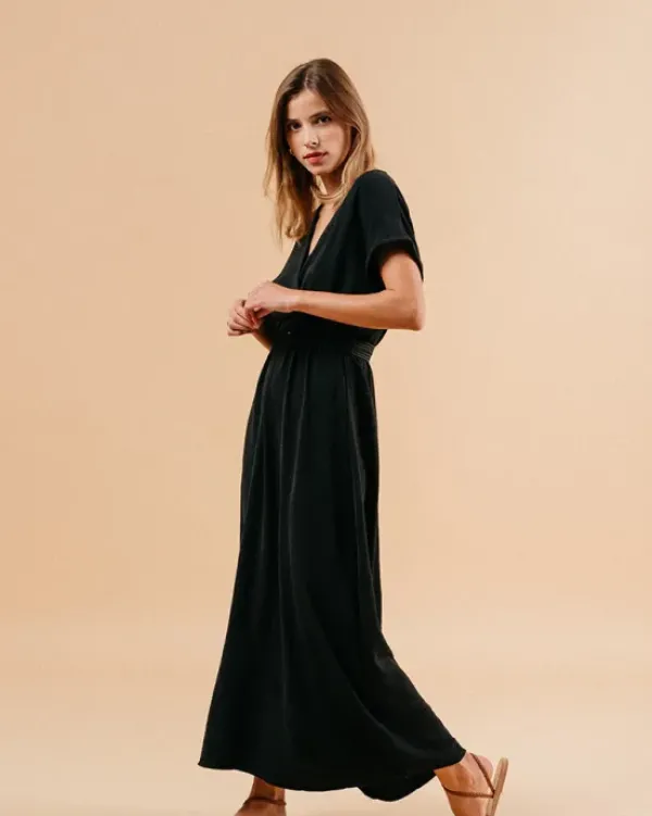 Musta maximekko, jossa lyhyet hihat ja kaunis cross-over kaula-aukko. Kiva mekko arkeen ja juhlaan. Yhdistä korkkarien tai ballerinojen kanssa juhlavammin tai pue tennareiden kanssa kesäiseen päivään!