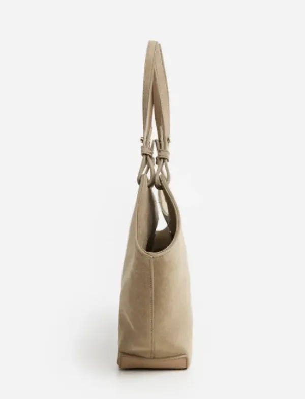 Kaunis Dilba Mini käsilaukku graafisella muotoilulla! Laukussa on irrotettava vetoketjullinen sisätasku. Suljetaan nahkalenkillä (ks. kuvat). Materiaalina ihana hiekanvärinen mokka
