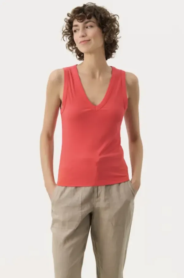 Part Twon kevään uutta: klassinen toppi v-kaula-aukolla. Miellyttävää ribbineulosta. Käytä neuleiden tai bleisereiden alla tai kesällä sellaisenaan.