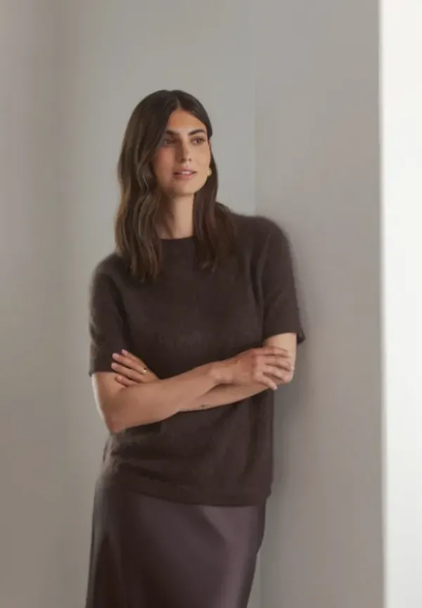 Lyhythihaisessa cashmereneuleessa yhdistyvät ylellisyys ja mukavuus. Klassinen O-pääntie, raglanhihojen istuvuus ja suora malli mukautuvat erinomaisesti monen kokoisille ja -muotoisille vartaloille. Kapeat käänteet hihansuissa ja helmassa viimeistelevät ilmeen. Pehmeä, harjattu cashmere tuntuu erityisen miellyttävältä iholla ja sopii täydellisesti niin arkeen kuin juhlavampiin tilaisuuksiin.