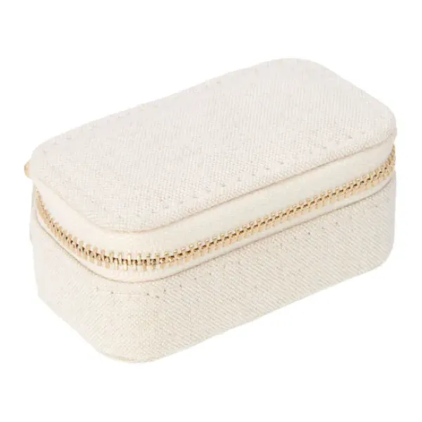 Tanskalaisen Pico Copenhagenin kaunis kankainen korurasia, jonka voit sulkea vetoketjulla. Sisällä erilaisia lokeroita sormuksille, ketjuille ja korvakoruille.