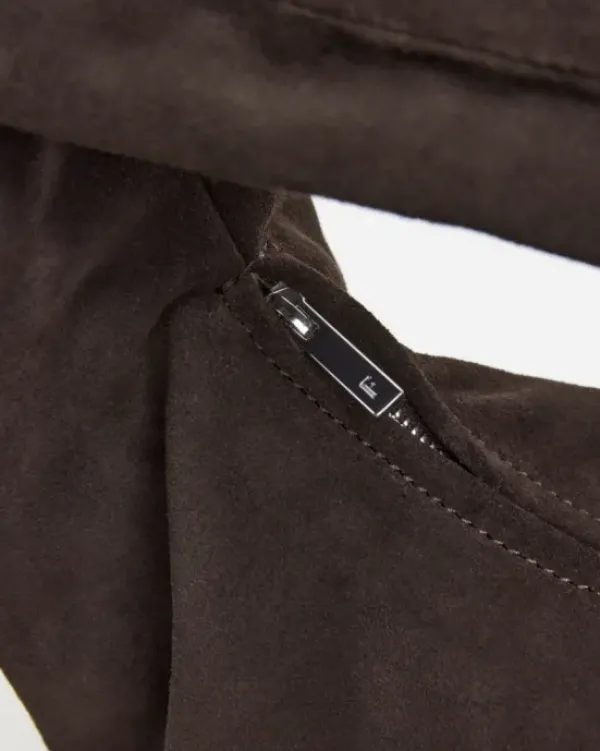 Kaunis Alva käsilaukku modernilla twistillä! Laukussa on sisätasku ja vetoketjukiinnitys. Materiaalina ihana suklaanruskea mokka!