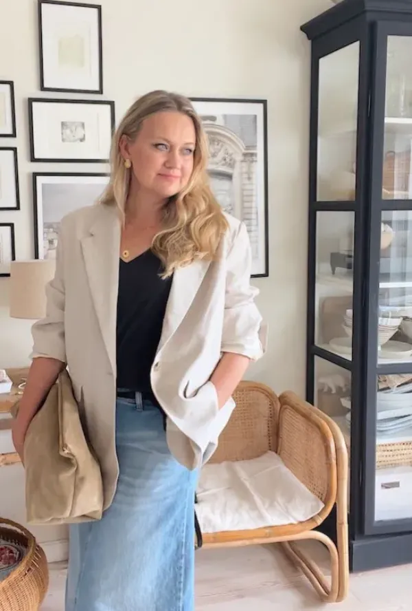 Samsoe&Samsoen rento bleiseri yhdellä napilla. Nyt niin trendikäs oversize malli miesten puvuntakin tyyliin… Etutaskut ja sisätasku. Kevyet olkatoppaukset. Materiaalina hivenen joustava pellavasekoite. Yhdistä saman sarjan Julia housujen tai vaikkapa farkkujen kanssa.