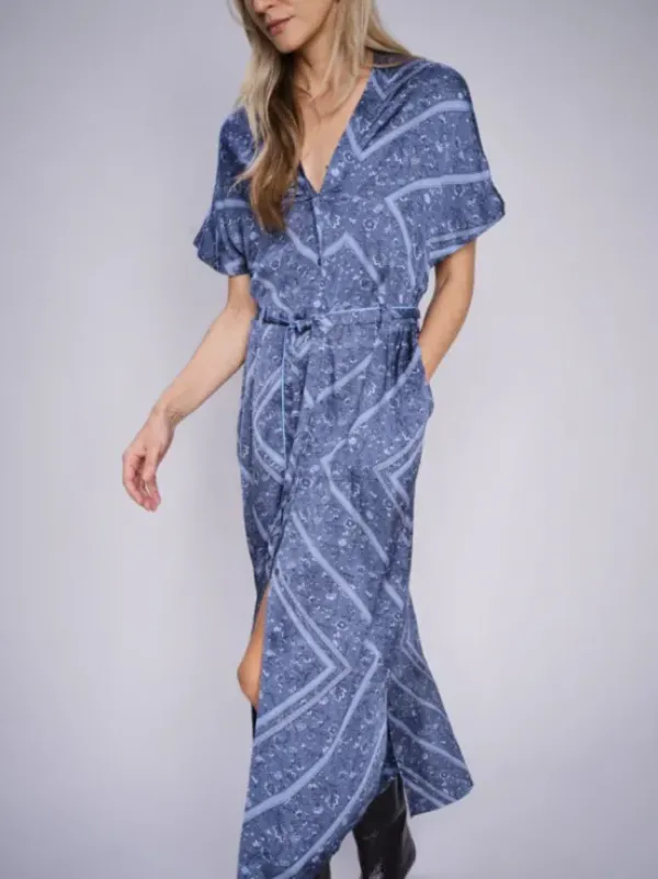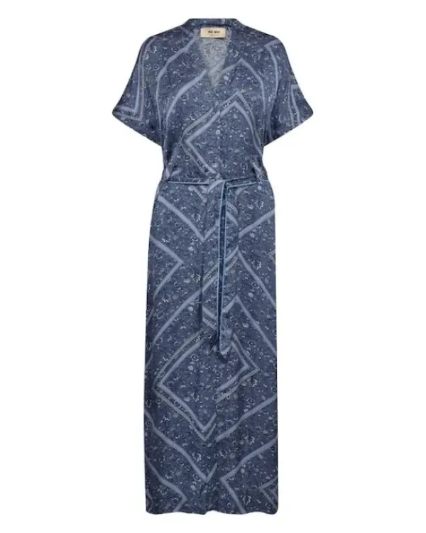 Mos Moshin näyttävä kuviollinen viskoosimekko kevääseen. Kaunis sininen kuviointi.