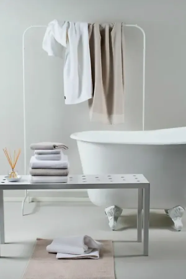 Himlan puuvillainen matto kylpyhuoneeseen. Kaunis vaalea helmenharmaa sävy.