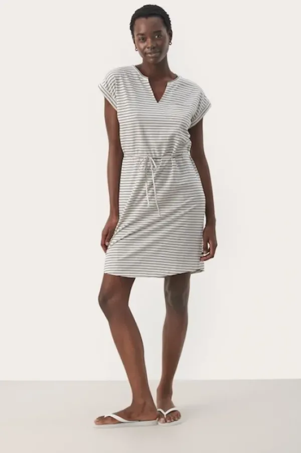 Part Twon suosikkimekko vuosien takaa nyt uudessa raitakuosissa. Kiva trikoomekko kesäiseen päivään. Lyhyet hihat, ja solmittava vyö vyötäröllä.