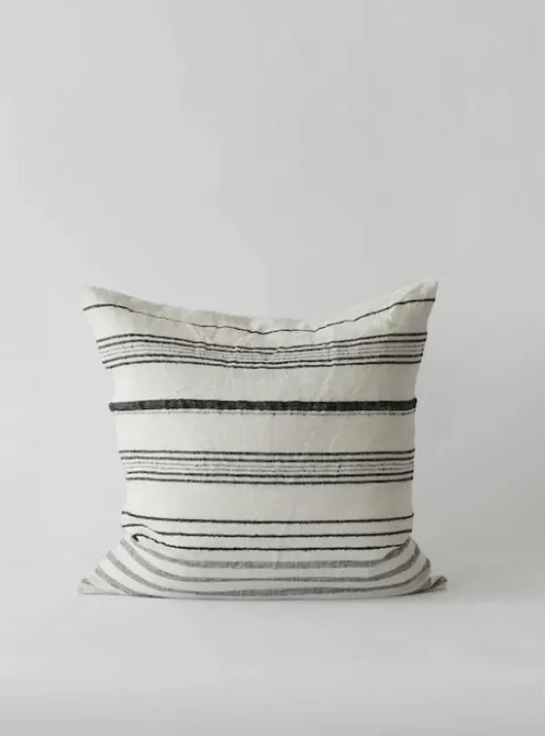 Beautiful cushion cover 50x50cm in a handwoven thin linen quality with neat black stripes and a white background. The cushion cover Noelle is perfect for both the sofa and the bed and can be mixed with other beautiful decorative pillows in different sizes and colours. Each cushion cover is unique and the texture, color and shape can therefore differ slightly from the pictures. The cushion covers close with a discreet zipper at the bottom and comes without an inner cushion.