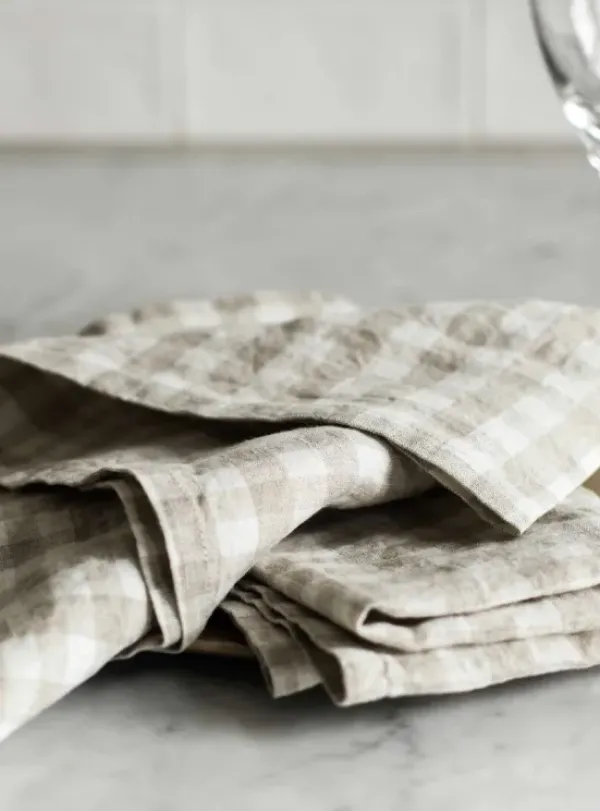 New – pellavaservetti ruutu, natural Keittiötekstiilit