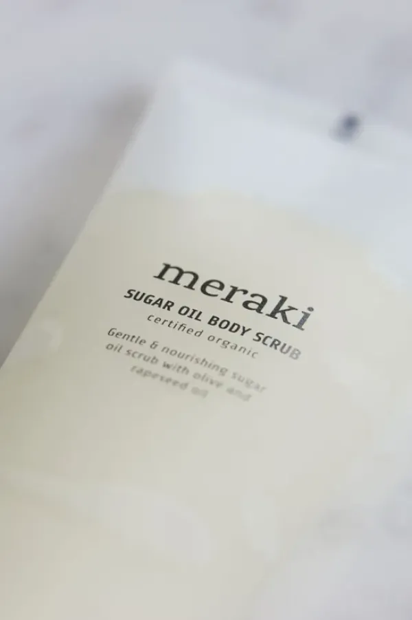 Tanskalaisen Merakin hellivällä kuorintavoiteella saat ihosi lempeästi pehmeäksi. Oliivi- ja rapsiöljyä sekä sokeria sisältävä kuorinta-aine hoitaa ja kuorii ihoa hellästi. Käy kehoa läpi pyörivin liikkein ja huuhtele ylimäärääiset pois lämpimällä vedellä.