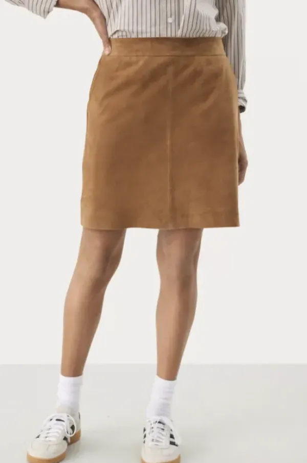 Part Twon klassinen mokkahame kauniissa ruskean sävyssä. Kevyesti A-linjainen malli, jossa vuorikangas. Vetoketju takana, taskut sivulla. Ihana klassikko!