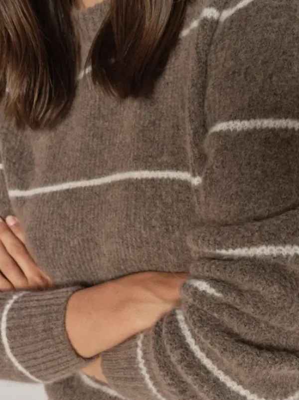 Mos Moshin ajaton raitaneule alpakan ja villan pehmoista sekoitetta. Tämä klassinen neule on kiva farkkujen kanssa tai vaikkapa mekon päällä viileänä päivänä. Kivat ohuet raidat. <3