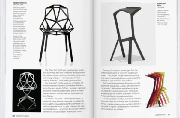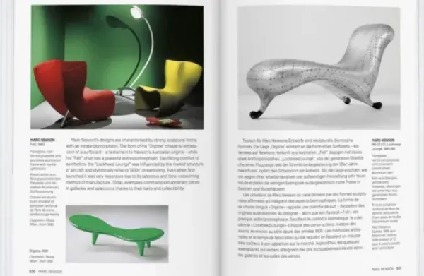 The particular curve of a backrest, or the twist of a leg, the angle of a seat or the color of the entire artifact; each element reflects the stylistic consciousness of an era. From Gerrit Rietveld and Alvar Aalto to Verner Panton and Eva Zeisel, from Art Nouveau to International Style, from Pop Art to Postmodernism, the history of the chair is so complex that it requires a comprehensive encyclopedic work to do it full justice. They are all here: Thonet’s bentwood chairs and Hoffmann’s sitting-machines, Marcel Breuer’s Wassily chair and Ron Arad’s avant-garde armchairs, Early designers and pioneers of the modern chair are presented alongside the most recent innovations in seating. This dedicated compendium displays each chair as pure form, along with biographical and historical information about the pieces and their designers, An illuminating tome for design aficionados and an essential reference for collectors!