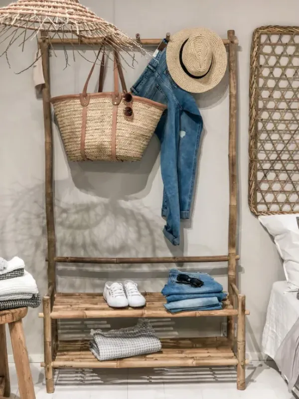 Ehkä maailman kaunein bambusta tehty vaatenaulakko koteihin ja kesäkoteihin <3. Mitat 100 x 37 x H 180 cm. Sopii myös ulos katetulle terassille tai parvekkeelle.