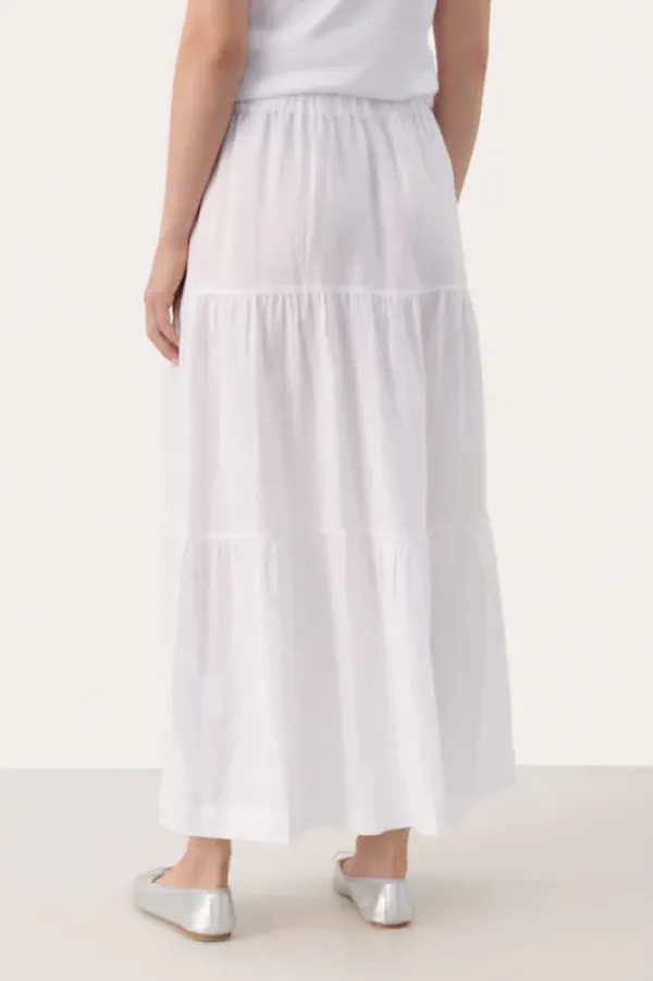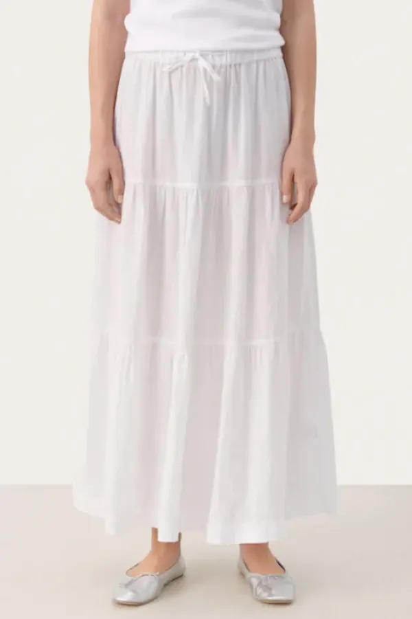 Part Twon pitkä hame 100% pellavaa. Klassinen malli, joka on helppo yhdistää trikoopaidan tai siistimmän yläosan kanssa. Vyötäröllä kuminauha ja solmimisnauha.