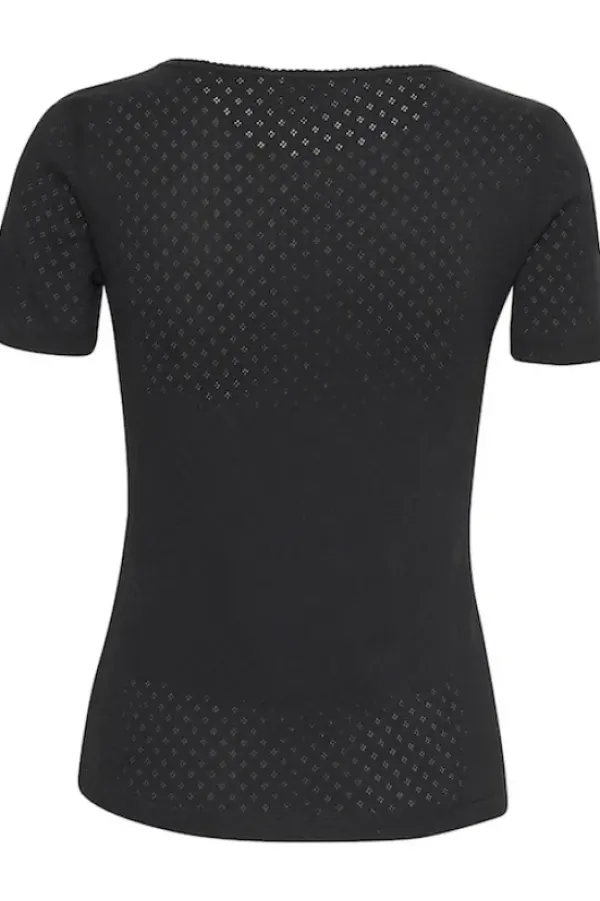 Part Twon slim fit t-paita, jossa pyöreähkö v-kaula-aukko ja kiva reikäkuviointi. Pue farkkujen tai hameen kanssa. Kiva paita myös neuleen tai jakun alle!