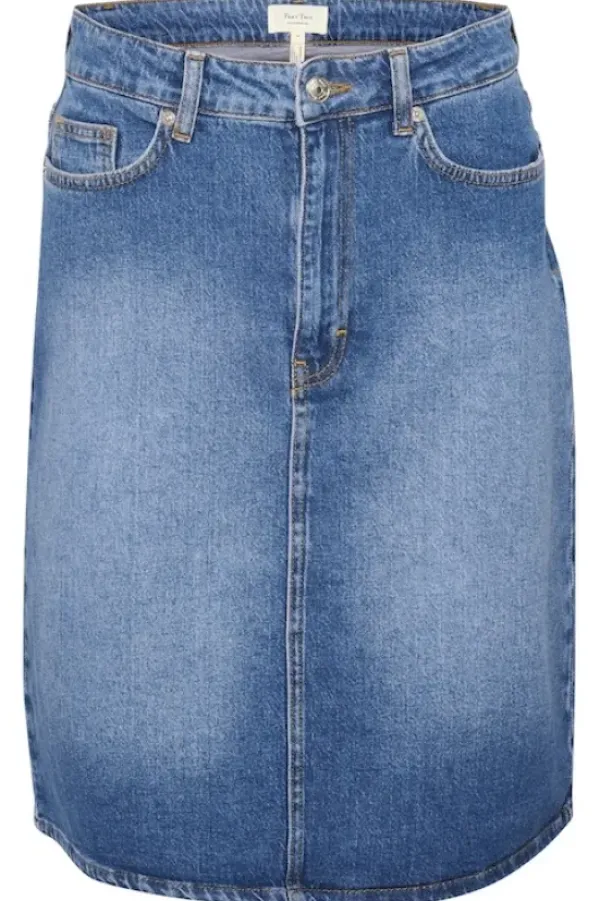 Part Twon lyhyt farkkuhame kivaa pestyä denimiä. Pituus polviin tai vähän polvien yläpuolelle. Sävynä kaunis keskisininen.