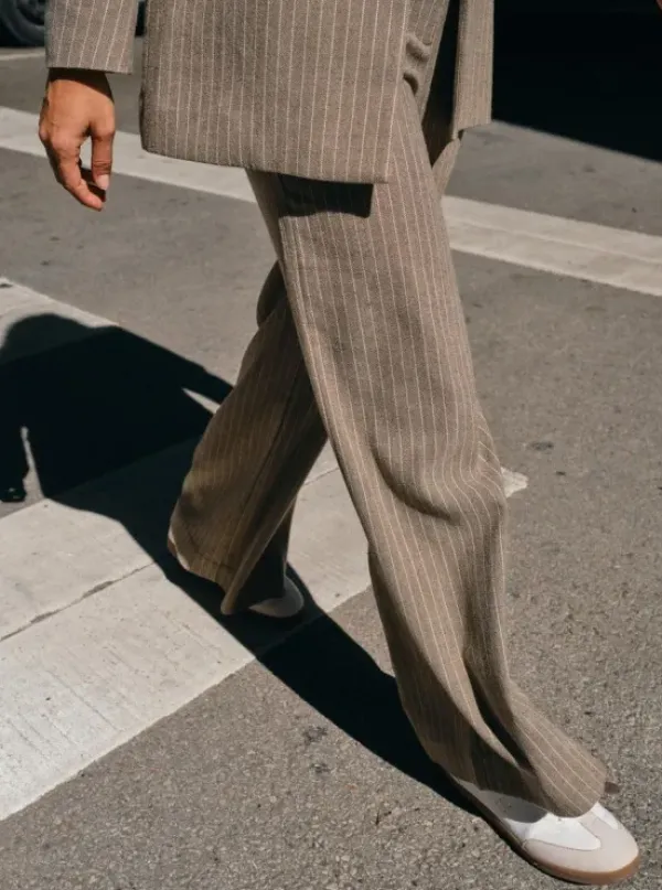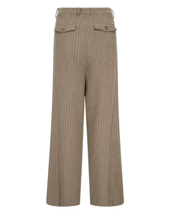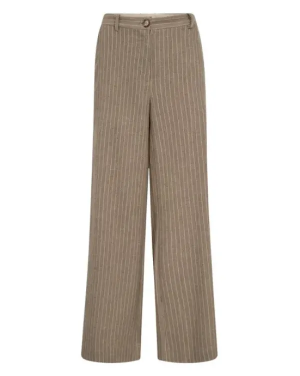 Näyttävät suorat housut leveillä, hyvin laskeutuvilla lahkeilla. Klassinen raitakuosi. Kivat housut siistimpään ja arkisempaan menoon…