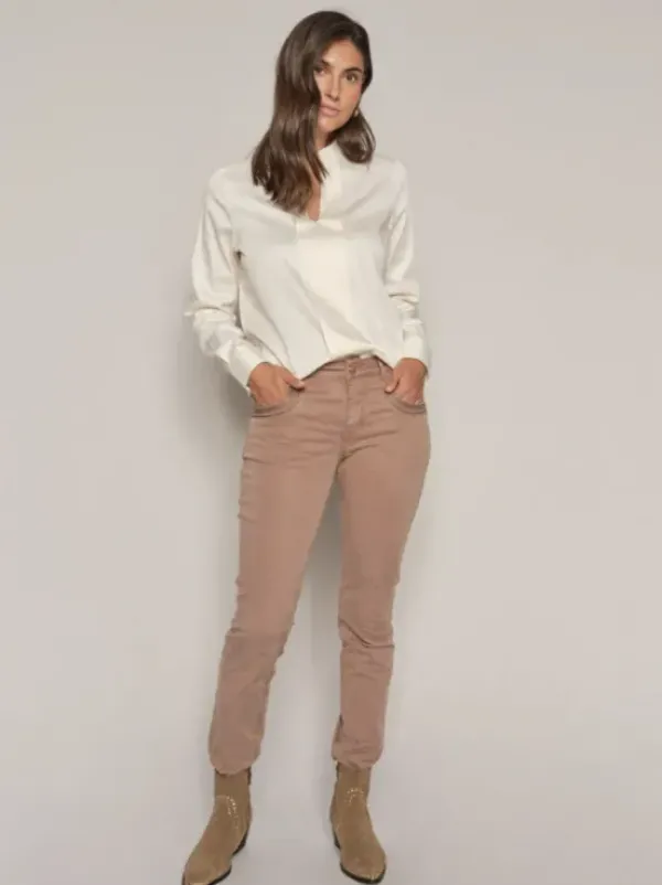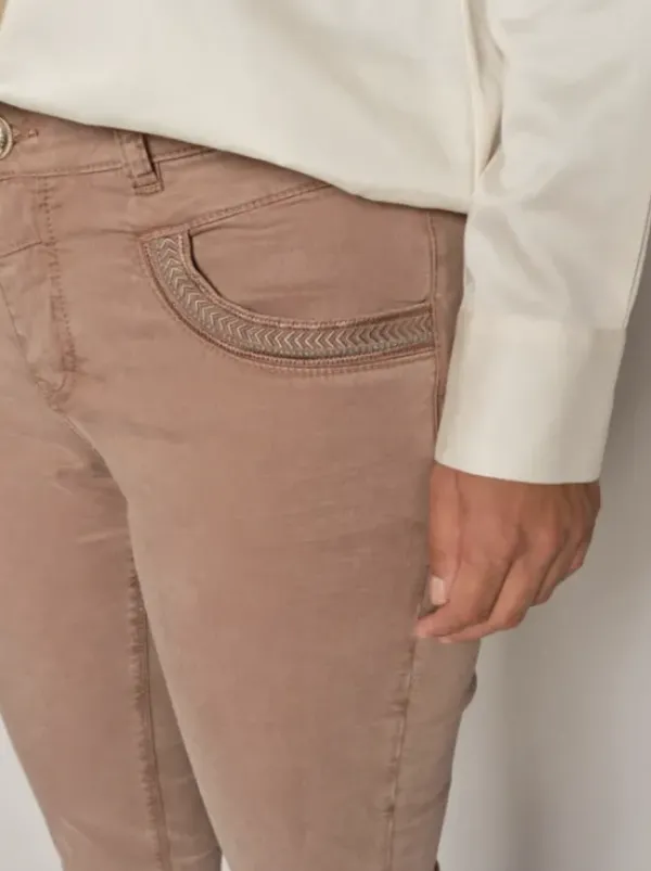 Mos Moshin suositut kapeat housut kauden uudessa lämpimän ruskean sävyssä. Keskikorkea vyötärö ja nahkasomisteet takataskuissa. Ihanat oversize paidan ja tennareiden kanssa. Regular lahkeen pituus.