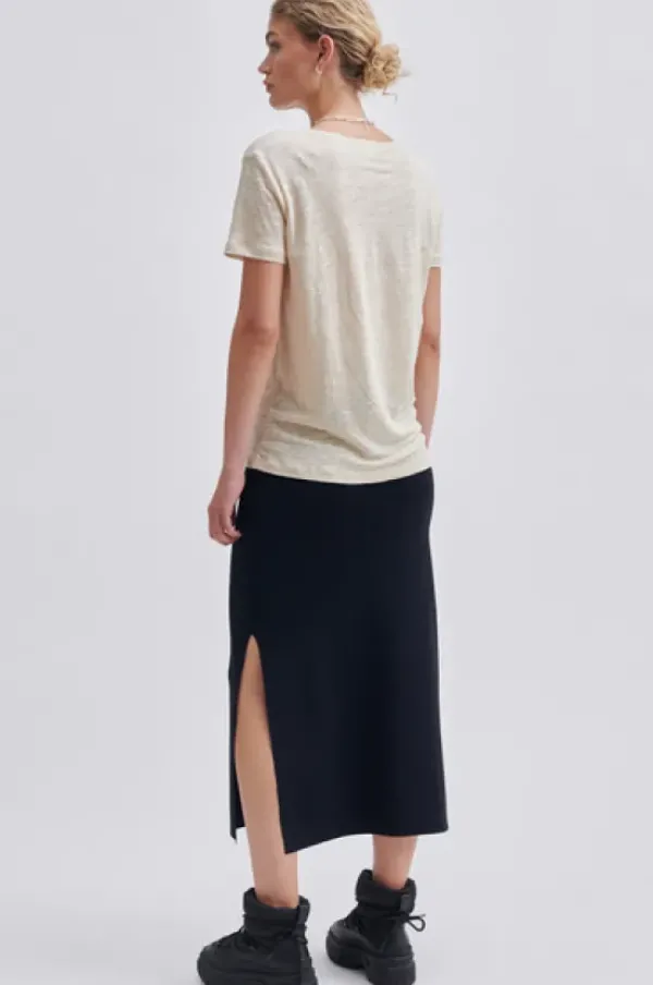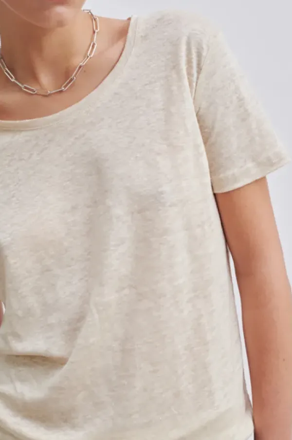 Second Femalen rento pellavainen t-paita pyöreällä kaula-aukolla. Monipuolinen vaatekaapin perusvaate, joka on helppo yhdistää monenlaiseen asuun. Ekologinen pellava on miellyttävä kuitu ympäri vuoden.