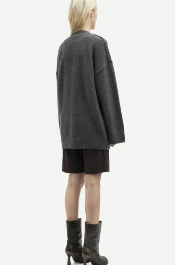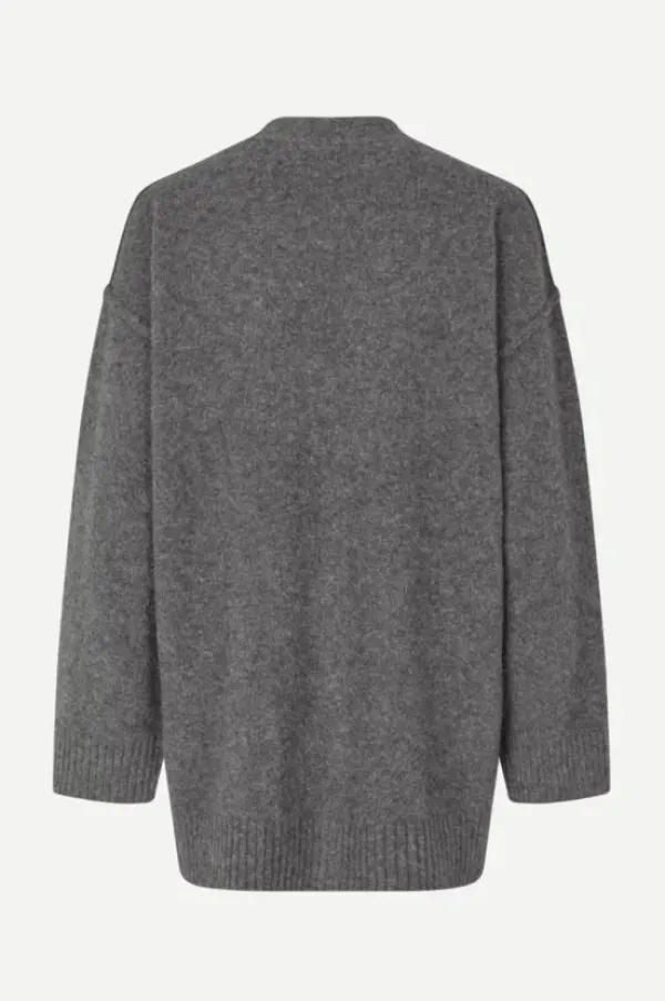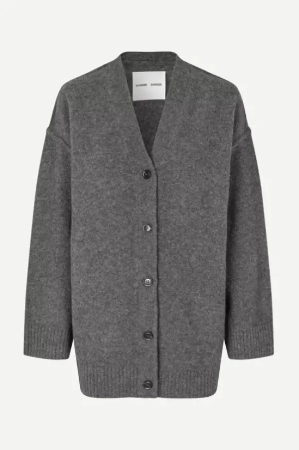 Samsoe&Samsoen klassinen neuletakki oversize-tyyliin. Edessä napit ja v-kaula-aukko. Mikäli haluat hieman istuvamman ilmeen, voit valita kokoa pienemmän neuletakin.