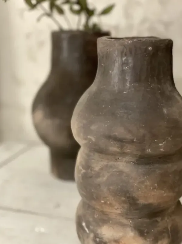 Tämä vaasi on valmistettu käsityönä Tunisiassa. Jokainen tuote on yksilö. Ihana vaasi koristeeksi sellaisenaan tai kuivakukille. Ei vettä vaasiin. Mikäli haluat käyttää tuorekukkien kanssa, laita sisälle pienempi lasiastia.
