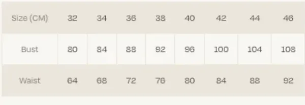 | Size | 34, 36, 38, 40, 42, 44, 46, 48 |