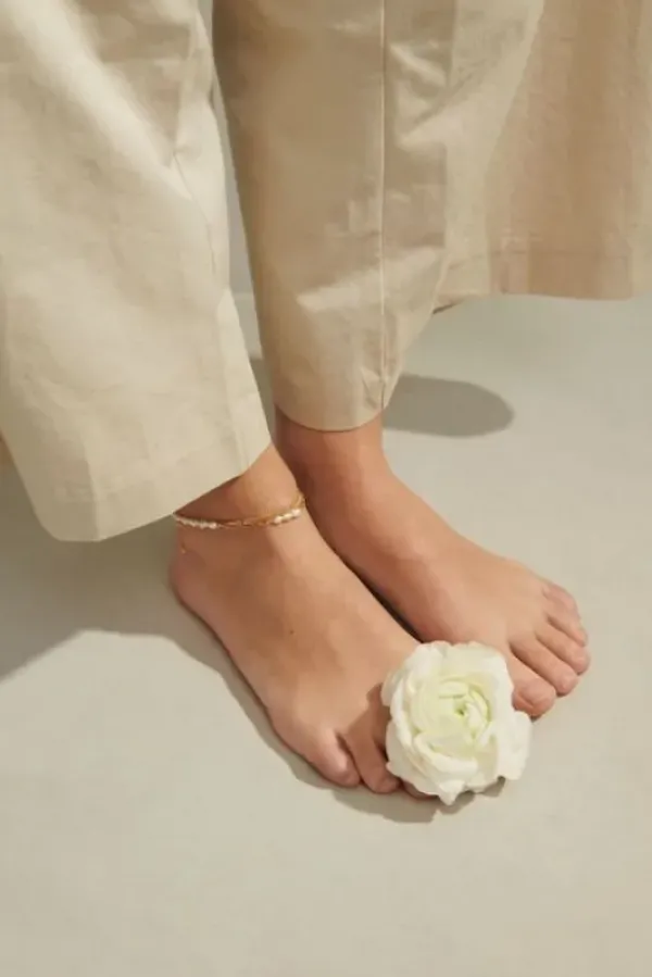 Nature can be both raw and wild, but also gentle and mild. We love nature’s enchanting contrasts and wonderful secrets. Look beneath the surface of the ocean to discover precious treasures, created by nature itself. The combination of pearls and chain gives the Seaside Anklet an organic look, which is both feminine and raw.