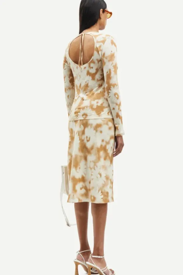 Samsoe&Samsoen kukkakuosinen pitkähihainen trikoopusero. Mukava pellavapaita, jossa näyttävä selkäpuoli, jonka saat solmittua nyörillä. Yhdistä farkkujen tai hameen kanssa mukava näyttävä look! <3