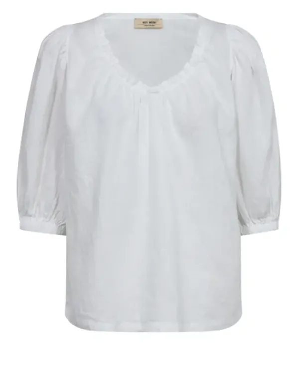Mos Moshin ihanan rento pellavapaita lyhyillä puhvihihoilla. Yhdistä pellavashortsien tai farkkujen kanssa tilanteen mukaan. Värinä valkoinen. Täydellinen kesäpaita siistiin tai rentoon lookkiin! <3